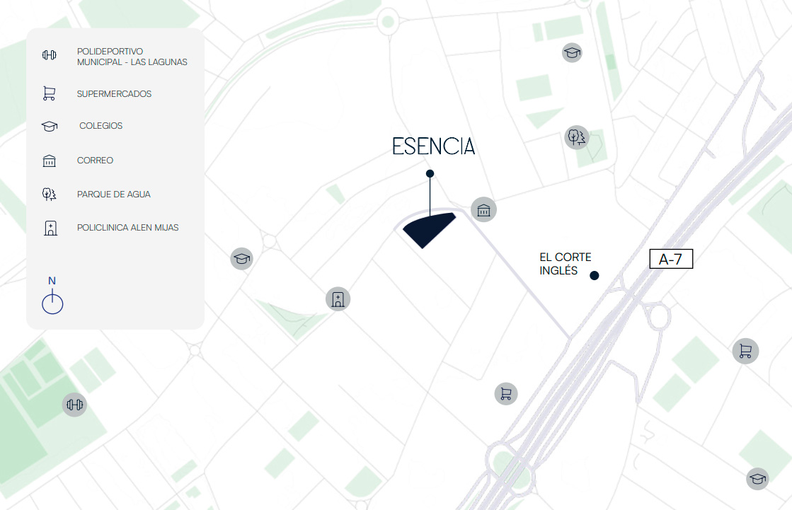ESENCIA es un residencial de 52 viviendas de 1, 2 y 3 dormitorios en la zona de Las Lagunas (Mijas), diseñado para quienes quieren una primera vivienda (o una vivienda para todo el año) con una combinación muy clara: servicios cerca, buena conexión y espacios exteriores para respirar.